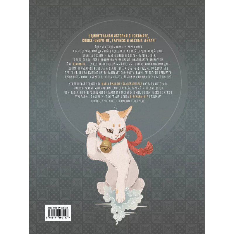 Воспоминания нэкоматы, кошки-оборотня. - От автора комикса-бестиария "Ёкаи и бакэмоно. Путеводитель по миру японских духов"! - Удивительная история любви и приключений нэкоматы - двухвостой кошки-оборотня из японской мифологии. - Марга Биацци (BlackBanshee) - художник комиксов, сотрудничает с множеством итальянских и зарубежных издательств. - Завораживающие иллюстрации и чарующие герои - феи, гарпии и лесные духи! - Для поклонников японской культуры, мифологии, аниме! Одна кошка потратила на странствия несколько жизней, прежде чем нашла свой дом. Ее нового хозяина зовут Этьен, а сама она получила имя Делис. Но Делис не обычная кошка, она нэкомата - двухвостый кошачий дух из японской мифологии! Делис влюбляется в Этьена и старается всегда быть рядом с ним. Однако случается ужасная трагедия, и над жизнью парня нависает угроза. Какие трудности придётся преодолеть кошке-оборотню, чтобы спасти любимого и самой стать счастливой?