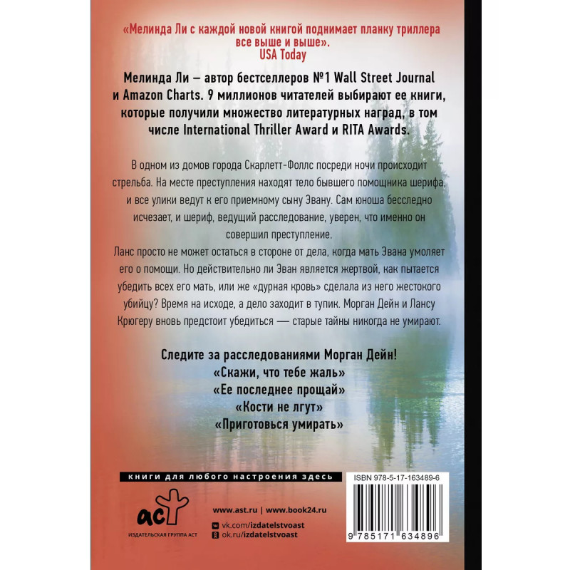 В одном из домов города Скарлетт-Фоллс посреди ночи происходит стрельба. На месте преступления находят тело бывшего помощника шерифа и все улики ведут к его приемному сыну Эвану. Сам юноша бесследно исчезает и шериф, ведущий расследование, уверен, что именно он совершил преступление. Ланс просто не может остаться в стороне от дела, когда мать Эвана умоляет его о помощи. Но действительно ли Эван является жертвой, как пытается убедить всех его мать, или же "дурная кровь" сделала из него жестокого убийцу? Время на исходе, а дело заходит в тупик. Морган Дейн и Лансу Крюгеру вновь предстоит убедиться - старые тайны никогда не умирают.