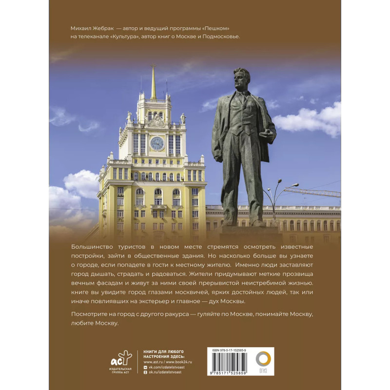 Данный авторский путеводитель подарочное издание о Москве. Города встречают по одежке. В первую очередь, мы замечаем нарядные фасады, франтоватые памятники, парадные площади. А как нравится приезжим мишура праздничной иллюминации на главных улицах. Дальше порывы личных впечатлений разбивают общую картину. Как приближение к полотну превращает очертания домов и соборов в цветные точки, так и спокойная прогулка оживляет улицу. Мы начинаем чувствовать ритм, настроение, видим лица прохожих. Большинство туристов в новом месте стремятся осмотреть известные постройки, зайти в общественные здания. Но насколько больше вы узнаете о городе, если попадете в гости к местному жителю. Люди. Именно они заставляют город дышать, страдать и радоваться. Жители придумывают меткие прозвища вечным фасадам, и живут за ними своей прерывистой неистребимой жизнью. В книге вы увидите город глазами москвичей, ярких достойных людей, так или иначе повлиявших на экстерьер и главное дух Москвы.