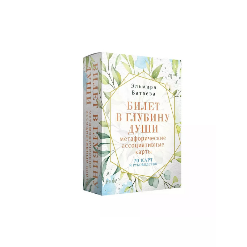 Эльмира Батаева психолог с несколькими дипломами и богатой практикой с тысячами счастливых клиентов, автор книг "Влюбись в себя и свою жизнь без остатка!" и "Прими себя и свою жизнь без остатка!". Созданные Эльмирой метафорические ассоциативные карты "Билет в глубину души" открывают доступ к вашим потаенным мыслям и желаниям и помогают проявить те ответы, которые скрываются в глубине вашей души. В коробке вы найдете: - 30 карт-вопросов, которые помогут разобраться в ключевых сферах жизни; - 30 карт-состояний, которые помогут выявить ресурс, необходимый для достижений, и пролить свет на причины напряжения и закрытости; - 10 карт-посланий, которые дадут вам вектор для реализации намеченного и обретения целостности и счастья; - сопроводительное руководство к колоде.