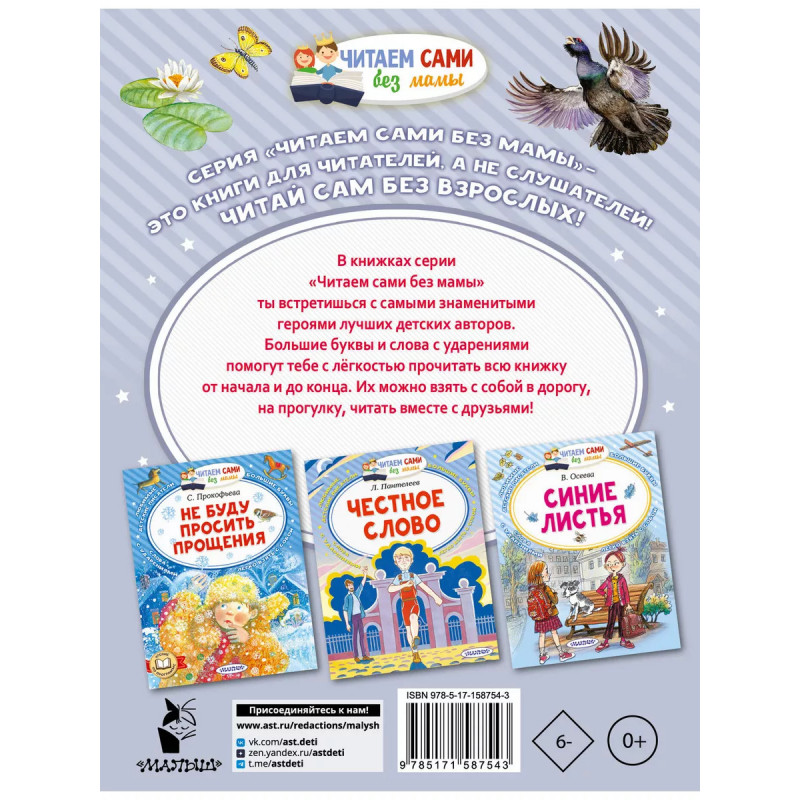 Васюткино озеро. Книги серии "Читаем сами без мамы" - это уникальное собрание золотого фонда отечественной литературы! Сказки, стихи рассказы с красочными иллюстрациями понравятся каждому малышу! Все произведения серии входят в обязательную программу по чтению, а крупный шрифт и ударения помогут ребёнку самостоятельно познакомиться с шедеврами детской мировой литературы. В этой книге юные читатели прочитают произведение В. Астафьева "Васюткино озеро". Вместе с героем ребята исследуют тайгу, отыщут таинственное озеро и научатся беречь природу. Читайте с пользой и удовольствием!