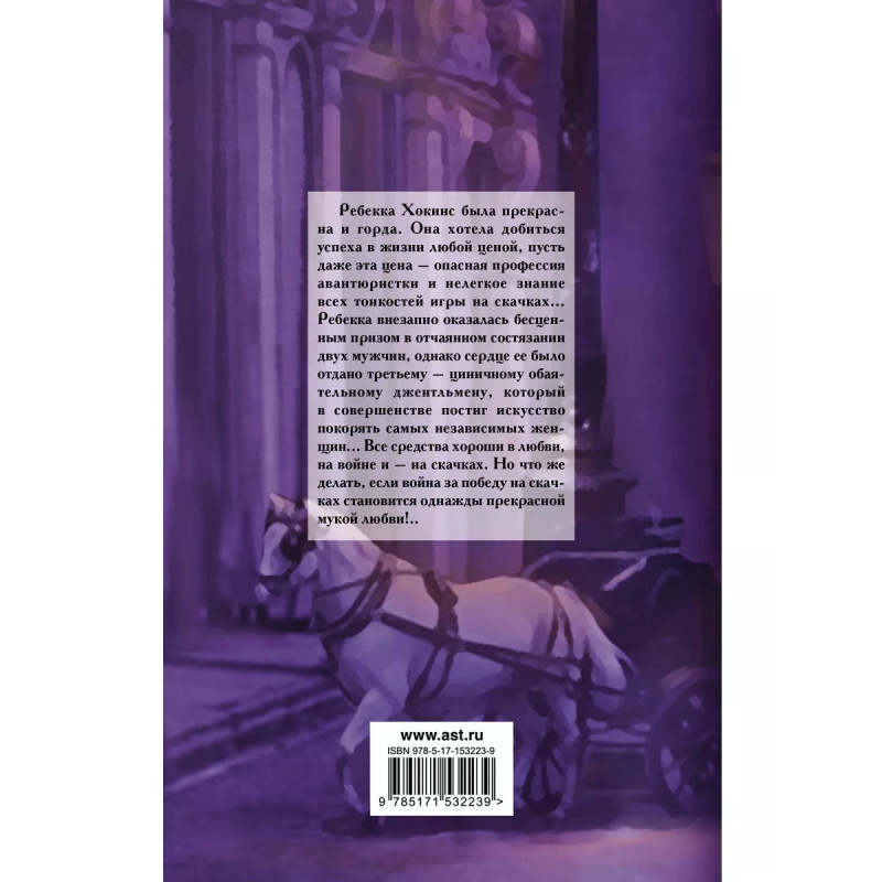 Прекрасная мука любви. Ребекка Хокинс была прекрасна и горда. Она хотела добиться успеха в жизни любой ценой, пусть даже эта цена - опасная профессия авантюристки и нелегкое знание всех тонкостей игры на скачках...Ребекка внезапно оказалась бесценным призом в отчаянном состязании двух мужчин, однако сердце ее было отдано третьему - циничному обаятельному джентльмену, который в совершенстве постиг искусство покорять самых независимых женщин...Все средства хороши в любви, на войне и - на скачках. Но что же делать, если война за победу на скачках становится однажды прекрасной мукой любви!..