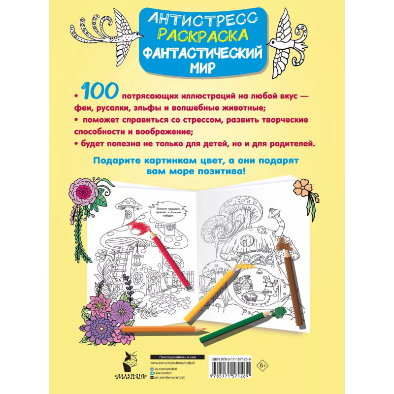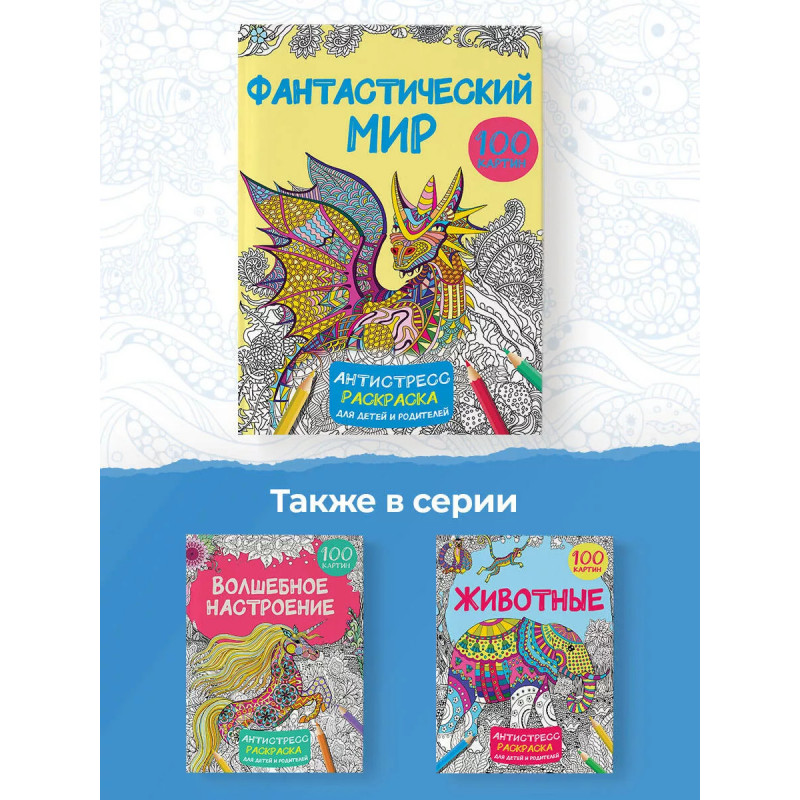 Фантастический мир 100 картинок. Антистресс-раскраски - один из лучших способов победить стресс и расслабиться после трудного дня.Детям они помогают снизить уровень тревожности, выработать усидчивость и проявить творческие способности. "Фантастический мир. 1 картинок" - замечательная антистресс-раскраска для расслабляющего отдыха. На рисунках - герои волшебных историй, невероятные существа и фантастические узоры. Всего - более 1 картинок с запутанными орнаментами и обилием мелких деталей. Работа с мелкими объектами позволяет полностью погрузиться в процесс раскрашивания и отвлечься от дел. Раскраска отлично подойдёт как для детей, так и для их родителей.