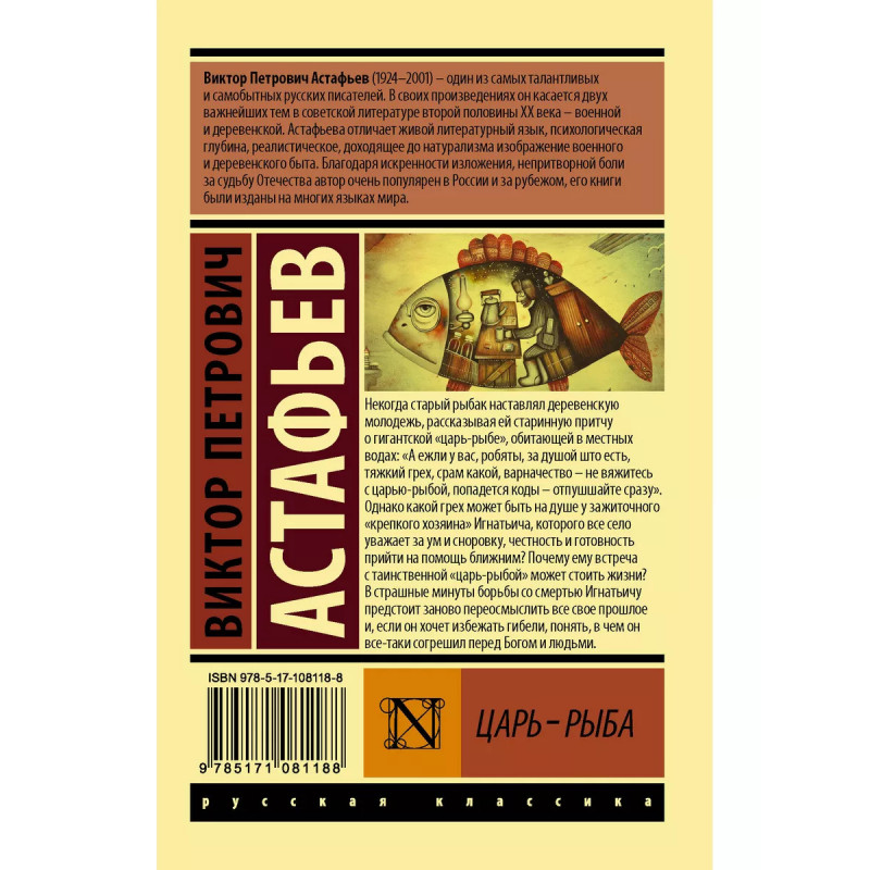 Царь-рыба. Некогда старый рыбак наставлял деревенскую молодежь, рассказывая ей старинную притчу о гигантской "царь-рыбе", обитающей в местных водах: "А ежли у вас, робяты, за душой што есть, тяжкий грех, срам какой, варначество - не вяжитесь с царью-рыбой, попадется коды - отпушшайте сразу". Однако какой грех может быть на душе у зажиточного "крепкого хозяина" Игнатьича, которого все село уважает за ум и сноровку, честность и готовность прийти на помощь ближним? Почему ему встреча с таинственной "царь-рыбой" может стоить жизни? В страшные минуты борьбы со смертью Игнатьичу предстоит заново переосмыслить все свое прошлое и, если он хочет избежать гибели, понять, в чем он все-таки согрешил перед Богом и людьми.