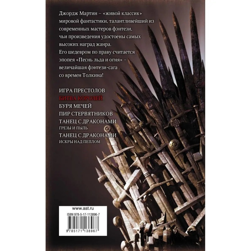 Джордж Мартин "живой классик" мировой фантастики, талантливейший из современных мастеров фэнтези, чьи произведения удостоены самых высоких наград жанра. Его шедевром по праву считается эпопея "Песнь льда и огня" величайшая фэнтези-сага со времен Толкина!