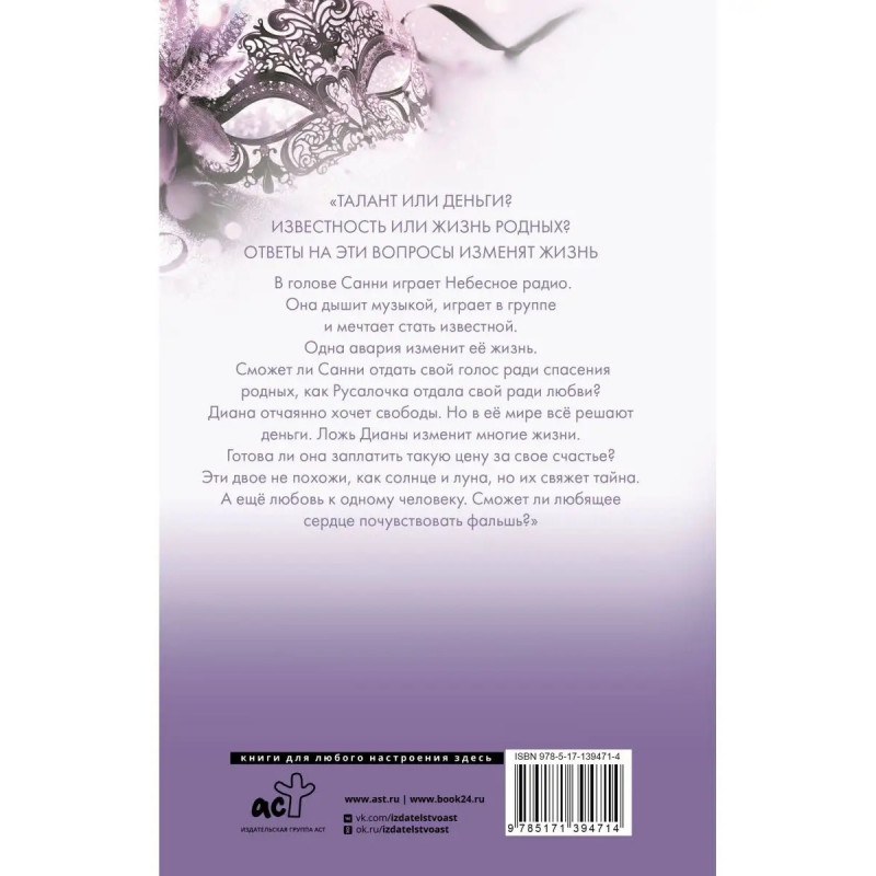 Диана певица, покорившая своим голосом миллионы людей. Она красива, талантлива и популярна. В нее влюблены Дастин - известный актер, за красивым лицом которого скрывается надменность и холодность, и Кристиан - незаконорожденный сын богатого человека, привыкший получать все, что хочет. Но никто не знает, что голос Дианы - это Санни, талантливая студентка музыкальной школы искусств. И пока на сцене одна, за сценой поет другая. Что заставило Санни продать свой голос? Сколько стоит чужой талант? Кто будет достоин любви, а кто останется ни с чем? И что победит: истинный талант или деньги? Небесная музыка начинает играть над их головами...