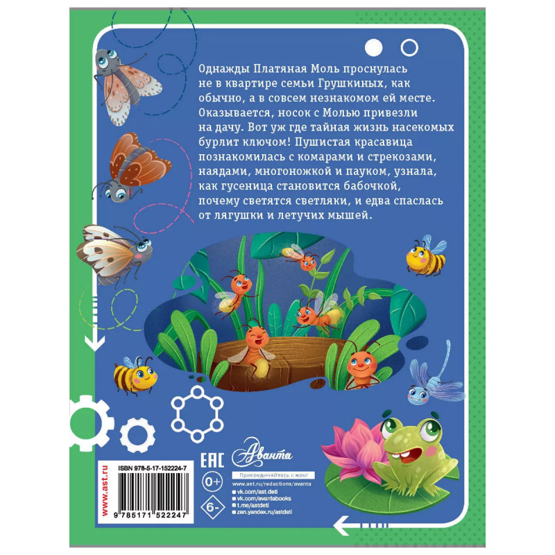 Тайная жизнь насекомых. Однажды Платяная Моль проснулась не в квартире семьи Грушкиных, как обычно, а в совсем незнакомом ей месте. Оказывается, носок с Молью привезли на дачу. Вот уж где тайная жизнь насекомых бурлит ключом! Пушистая красавица познакомилась с комарами и стрекозами, наядами, многоножкой и пауком, узнала, как гусеница становится бабочкой, почему светятся светляки и едва спаслась от лягушки и летучих мышей. Много интересных фактов о насекомых встретится в увлекательной сказке Виктории Царинной "Тайная жизнь насекомых". Иллюстрации Кристины Митиной. Для младшего школьного возраста. Виктория Царинная - писатель, переводчик, победитель множества литературных конкурсов и международного Корнейчуковского фестиваля детской литературы 2019, 2020 и 2021 годов. Её книги выходят в издательствах "Феникс-Премьер", "Стрекоза", "40 книг", "Титул", "Издательство АСТ".