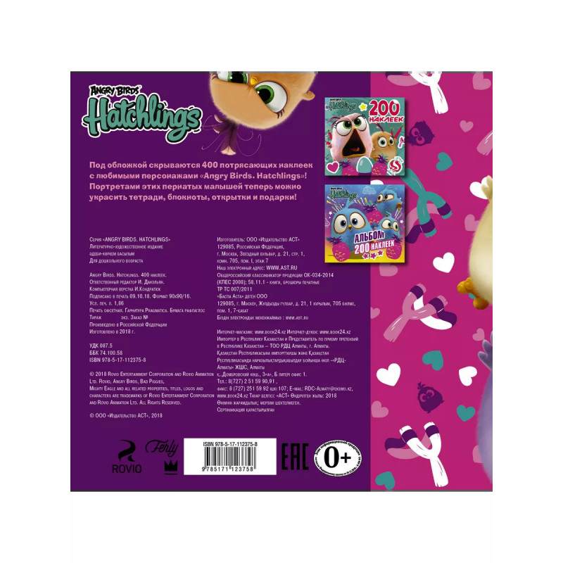 Под обложкой скрываются 400 потрясающих наклеек с любимыми персонажами "Angry Birds. Hatchlings"! Портретами этих пернатых малышей теперь можно украсить тетради, блокноты, открытки и подарки!