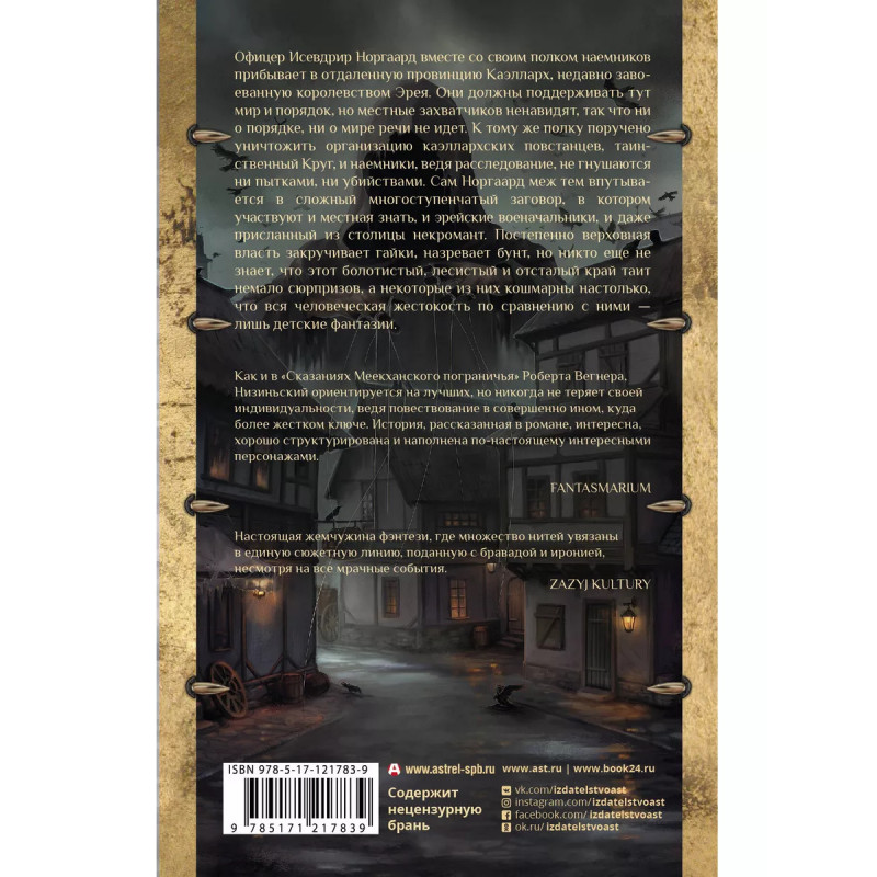 Офицер Исевдрир Норгаард вместе со своим полком наемников прибывает в отдаленную провинцию Каэлларх, недавно завоеванную королевством Эрея. Они должны поддерживать тут мир и порядок, но местные захватчиков ненавидят, так что ни о порядке, ни о мире речи не идет. К тому же полку поручено уничтожить организацию каэллархских повстанцев, таинственный Круг. И наемники, ведя расследование, не гнушаются ни пытками, ни убийствами. Сам Норгаард меж тем впутывается в сложный многоступенчатый заговор, в котором участвуют и местная знать, и эрейские военачальники, и даже присланный из столицы некромант. Постепенно верховная власть закручивает гайки, назревает бунт, но никто еще не знает, что этот болотистый, лесистый и отсталый край таит немало сюрпризов, а некоторые из них кошмарны настолько, что вся человеческая жестокость по сравнению с ними лишь детские фантазии.