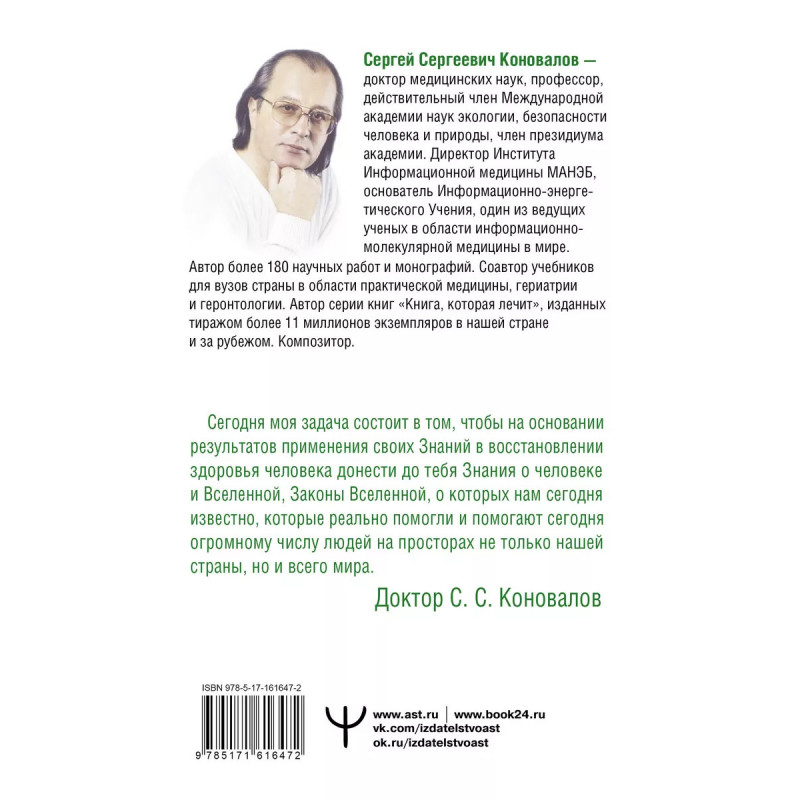 Эта книга Сергея Сергеевича Коновалова, посвященная вопросам здоровья пищеварительной системы человека, необходима как тем, кто уже столкнулся с заболеваниями органов пищеварения, хочет вылечиться сам и помочь своим родным и близким быть здоровыми, так и тем, кто хочет предотвратить развитие нарушений работы ЖКТ и научиться жить насыщенной, активной и интересной жизнью. Важная информация о причинах, симптомах и методах лечения заболеваний органов пищеварения, рекомендации по питанию. Энергетические упражнения для восстановления полноценной работы ЖКТ. Особенно нужна эта книга: " Тем, кто болен и кому медицина отказывает в помощи. Сергей Сергеевич Коновалов помог уже сотням тысяч неизлечимых больных. " Тем, кто не хочет болеть и стареть, хочет понять причины своих болезней и ищет способы исцеления души и тела. " Тем, кто интересуется Информационно-энергетическим Учением, ищет знания об устройстве человека, Мира и Вселенной, кого интересует личность Доктора и его жизненный путь. " Тем, у кого "болит душа", кто