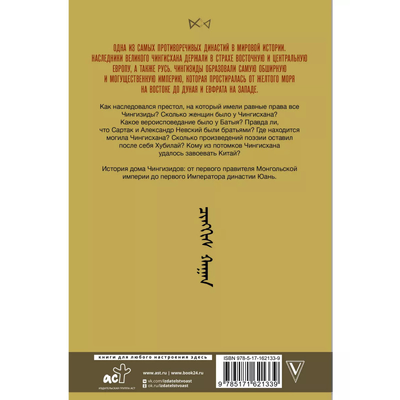 Одна из самых противоречивых династий в мировой истории. Наследники великого Чингисхана держали в страхе Восточную и Центральную Европу, а также Русь. Чингизиды образовали самую обширную и могущественную империю, которая простиралась от Желтого моря на востоке до Дуная и Евфрата на западе. Как наследовался престол, на который имели равные права все Чингизиды? Сколько женщин было у Чингисхана? Какое вероисповедание было у Батыя? Правда ли, что Сартак и Александр Невский были братьями? Где находится могила Чингисхана? Сколько произведений поэзии оставил после себя Хубилай? Кому из потомков Чингисхана удалось завоевать Китай? История дома Чингизидов: от первого правителя Монгольской империи до первого Императора династии Юань.