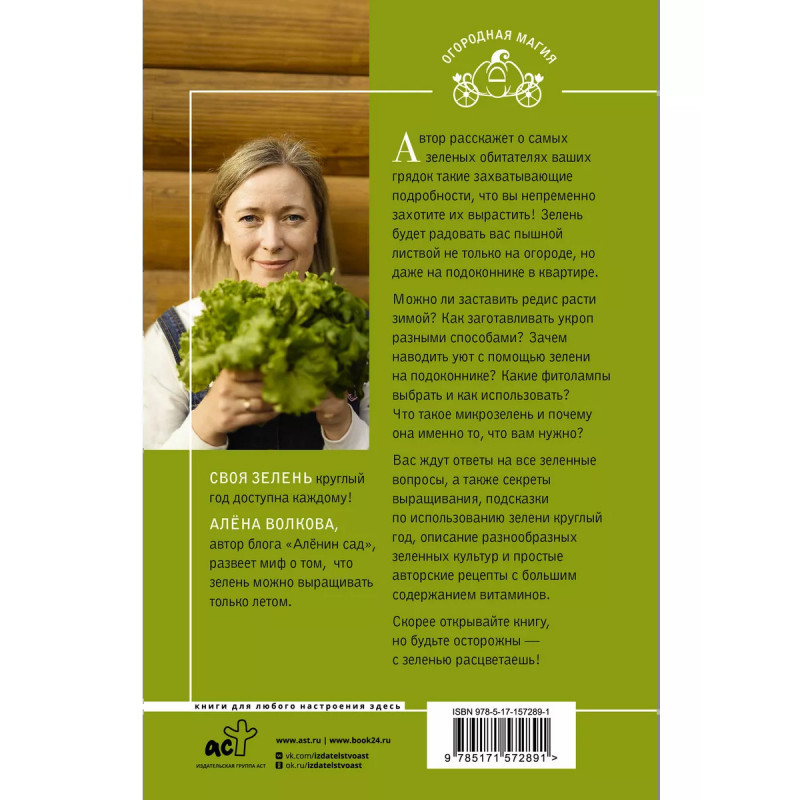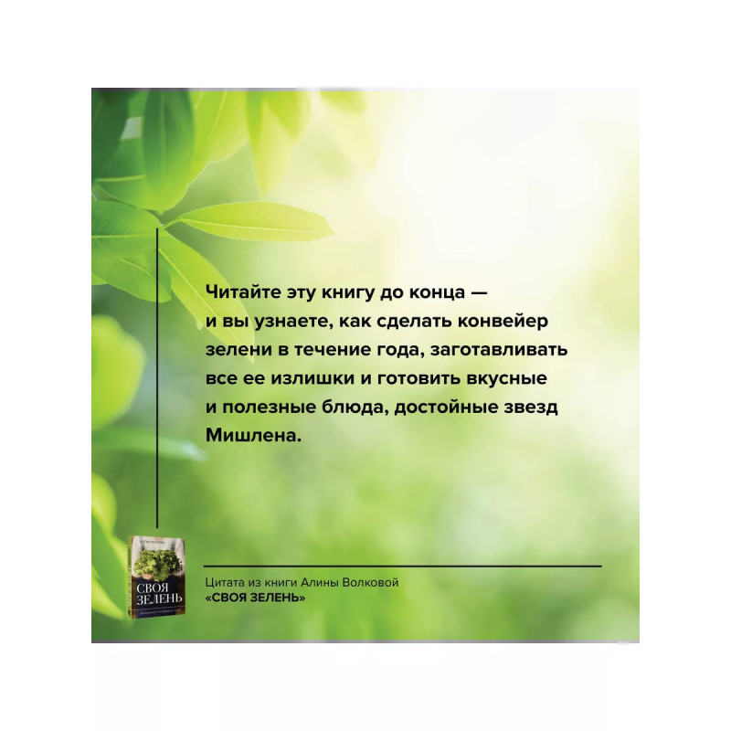Своя зелень. Выращиваем, ухаживаем и едим. Думаете, свежая зелень бывает только летом? Вы хотите радовать себя и свою семью натуральными витаминами даже зимой, но качество и ассортимент зелени в магазине и на рынке оставляет желать лучшего? С новой книгой Алены Волковой "Своя зелень. Выращиваем, ухаживаем и едим" вы научитесь самостоятельно выращивать зелень круглый год даже, если у вас нет огорода. Начните с самых "детских" вариантов - микрозелени или кресс-салата. В книге вы найдете советы от кандидата биологических наук, садовода с 10-летним стажем, автора канала на ютуб "Аленин сад" Алены Волковой. Рекомендации Алены помогут вам выращивать как распространенные виды микрозелени, вроде лука, редиса, базилика или брокколи, так и редкие виды, например, настурцию, лебеду или овес. Овладеть искусством выращивания домашней зелени сможет каждый! На страницах книги вы найдете простые способы для новичков, например, выращивание зелени из остатков, и способы более замысловатые, для профессионалов или тех, кто хочет превратить свое зеленое увлечение в бизнес.
