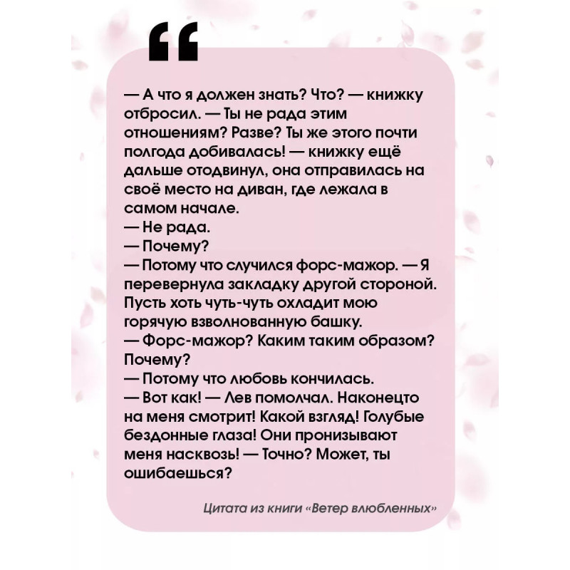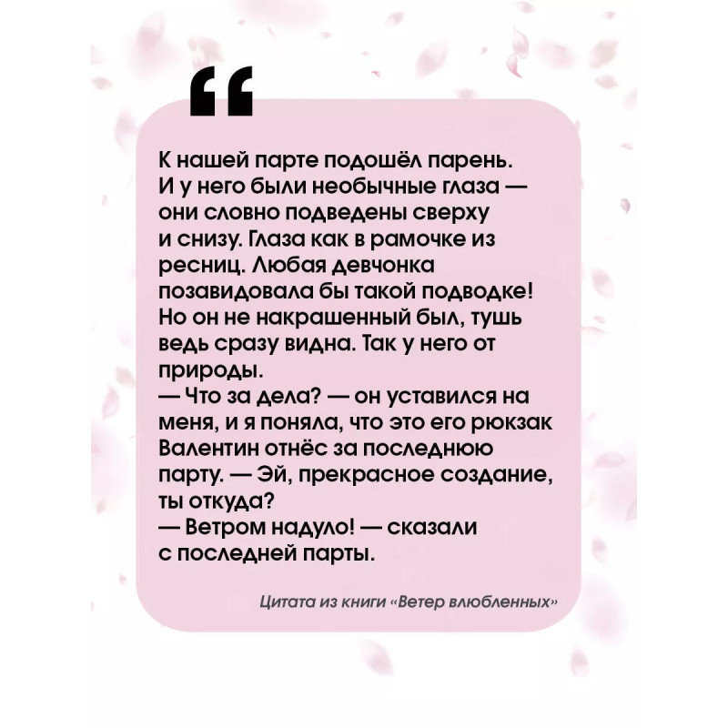 Ветер влюбленных. Вета очень упорная девушка, она всегда достигает поставленных целей. Но что делать, если твоя цель - это любовь другого человека? Насильно мил не будешь. А ещё она когда-то очень сильно обидела этого парня. Да так, что они не общаются до сих пор. Им хотя бы просто заговорить, какая тут любовь Ветка не из тех, кто сдаётся. И, может быть, для неё и Лёвы задует ветер влюблённых, пусть даже полярный.
