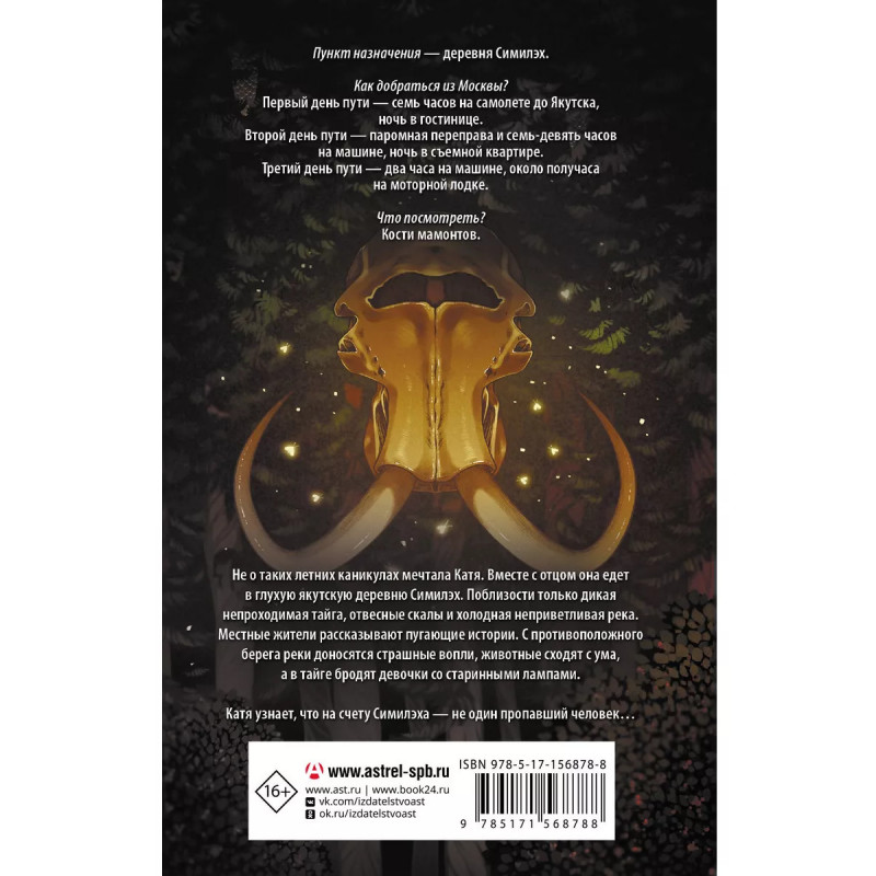 Девочки в тайге. Пункт назначения - деревня Симилэх. Как добраться из Москвы? Первый день пути - семь часов на самолете до Якутска, ночь в гостинице. Второй день пути - паромная переправа и семь-девять часов на машине, ночь в съемной квартире. Третий день пути - два часа на машине, около получаса на моторной лодке. Что посмотреть? Кости мамонтов. Не о таких летних каникулах мечтала Катя. Вместе с отцом она едет в глухую якутскую деревню Симилэх. Поблизости только дикая непроходимая тайга, отвесные скалы и холодная неприветливая река. Местные жители рассказывают пугающие истории. С противоположного берега реки доносятся страшные вопли, животные сходят с ума, а в тайге бродят девочки со старинными лампами. Катя узнает, что на счету Симилэха - не один пропавший человек.