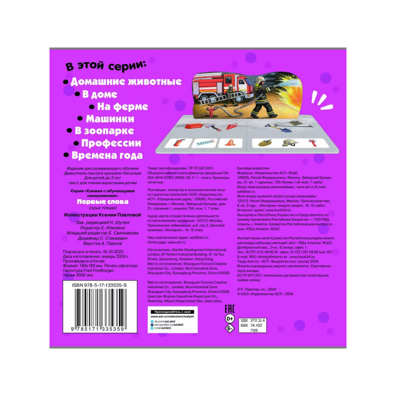 Первые познавательные книжки с интерактивом для самых маленьких! Эти книги расскажут малышам об окружающем мире, животных, предметах и понятиях, помогут развить мелкую моторику и образное мышление. В книге маленьких читателей ждут 6 встающих панорам на плотном картоне, яркие и забавные иллюстрации, короткие познавательные тексты и мини-квесты по поиску предметов.