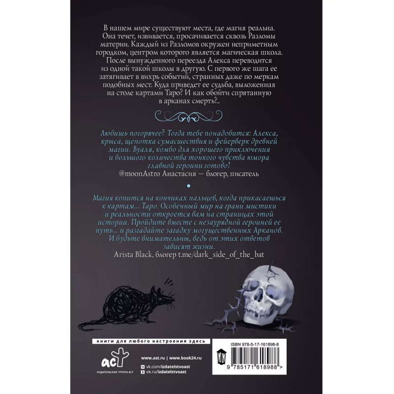 В нашем мире существуют места, где магия реальна. Она течет, извивается, просачивается сквозь Разломы материи. Каждый из Разломов окружен неприметным городком, центром которого является магическая школа. После вынужденного переезда Алекса переводится из одной такой школы в другую. С первого же шага ее затягивает в вихрь событий, странных даже по меркам подобных мест. Куда приведет ее судьба, выложенная на столе картами Таро? И как обойти спрятанную в арканах смерть?..