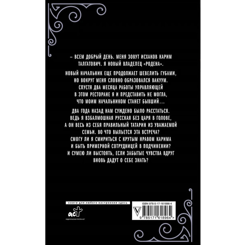 - Всем добрый день. Меня зовут Исхаков Карим Талгатович. Я новый владелец "Родена". Спустя два месяца работы управляющей в этом ресторане я и представить не могла, что моим начальником станет бывший... Во что выльется эта встреча?