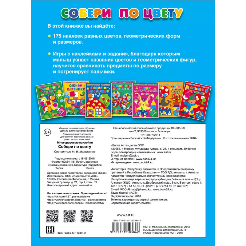 Веселые развивающие задания помогут малышу выучить цвета радуги, а яркими наклейками ребенок сможет украсить страницы этой книжки.