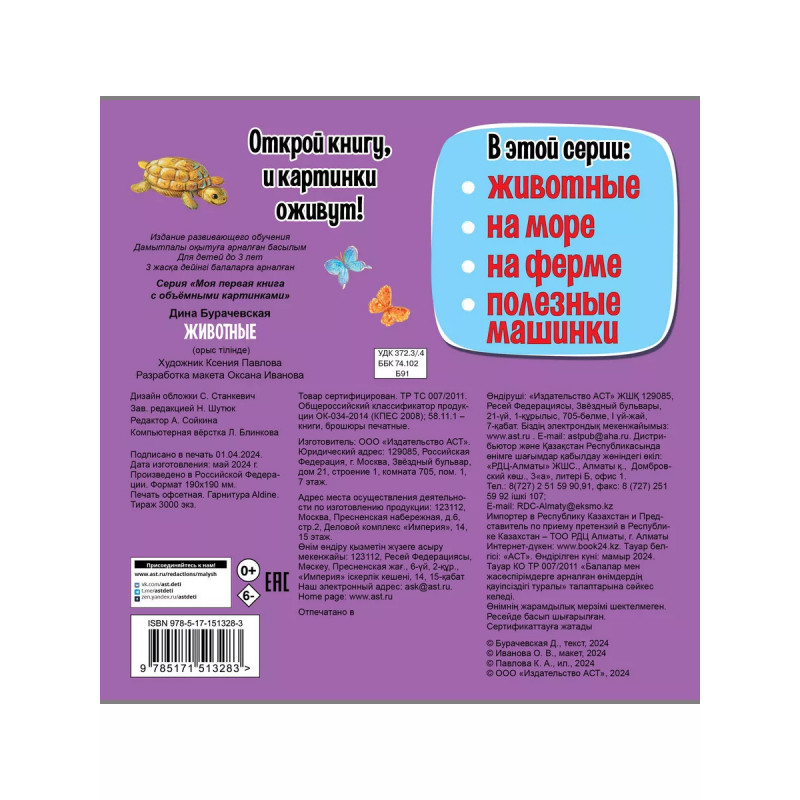 Кто живет в жарких джунглях? Огромный слон, ловкие обезьянки, зубастый крокодил... Все они - и многие другие герои - так спешат познакомиться с малышом и рассказать о себе, что выпрыгивают со страниц этой книги! Красочные иллюстрации и объемные бумажные конструкции превращают книгу в полноценную игрушку, которая станет настоящим другом для ребенка, расскажет ему об окружающем мире, поможет развить мелкую моторику и образное мышление. Облегчить восприятие и запоминание новой информации помогут веселые стихи Дины Бурачевской. Откройте книгу и ее герои оживут!