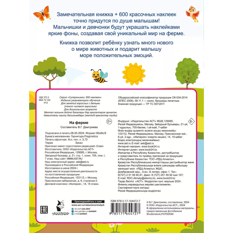 На ферме это креативная и забавная книга. 600 качественных наклеек с изображением домашних животных. Ребёнок сам решает, как расположить наклейки на красочных фонах. Это отличная возможность для развития воображения, мелкой моторики и логики. Игра с наклейками не только развлекает, но и обучает. Ваш малыш узнает о разных животных. Эта книга способствует развитию любознательности и исследовательских навыков у детей. Прекрасно подходит для совместного времяпровождения в семье или для самостоятельных занятий.