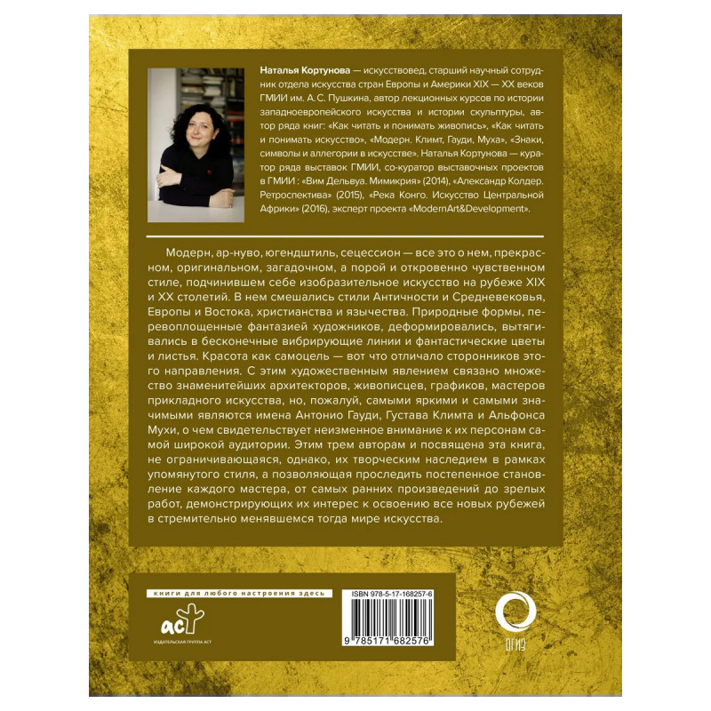 Модерн, ар-нуво, югендштиль, сецессион все это о нем, прекрасном, оригинальном, загадочном, а порой и откровенно-чувственном стиле, подчинившем себе изобразительное искусство на рубеже XIX и XX столетий. С этим художественным явлением связано множество знаменитейших архитекторов, живописцев, графиков, мастеров прикладного искусства, но, пожалуй, самыми яркими и самыми значимыми являются имена Антонио Гауди, Густава Климта и Альфонса Мухи, о чем свидетельствует неизменное внимание к их персонам самой широкой аудитории. Этим трем авторам и посвящена эта книга, не ограничивающаяся, однако, их творческим наследием в рамках упомянутого стиля, а позволяющая проследить постепенное становление каждого мастера, от самых ранних произведений до зрелых работ, демонстрирующих их интерес к освоению все новых рубежей в стремительно менявшемся тогда мире искусства.