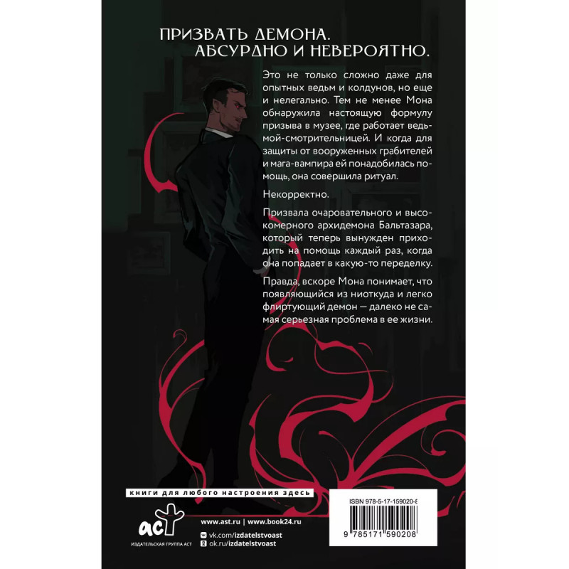 Первая часть ироничной фэнтези-трилогии о ведьме-неудачнице! Египетские мумии, проклятые реликвии, сатанинские гобелены и духи умерших художников, привязанные к своим произведениям. Мифоисторический музей СРОЧНО ищет ведьму-надзирательницу. Для неуклюжей Моны это отличная возможность: ведь где-то нужно работать. Ее магия нестабильна, и Мона применяет ее в самом крайнем случае. Но когда во время ее смены в музей вторгаются вооруженные маги, Моне приходится искать помощи. Как удачно, что под рукой формула призыва архидемона! Демон Бальтазар прогоняет кровожадного грабителя-вампира, но только порождает множество проблем. Ведь теперь он привязан к Моне ритуалом и появляется каждый раз, когда ей нужна помощь. И не важно, сражается она с темной магией или всего лишь с упрямой крышкой от банки варенья Обоим тяжело смириться с тем, как часто жизнь сталкивает их лбами. Но когда маг-вампир возвращается, Мона понимает, что обаятельный демон далеко не самая большая проблема в ее жизни.