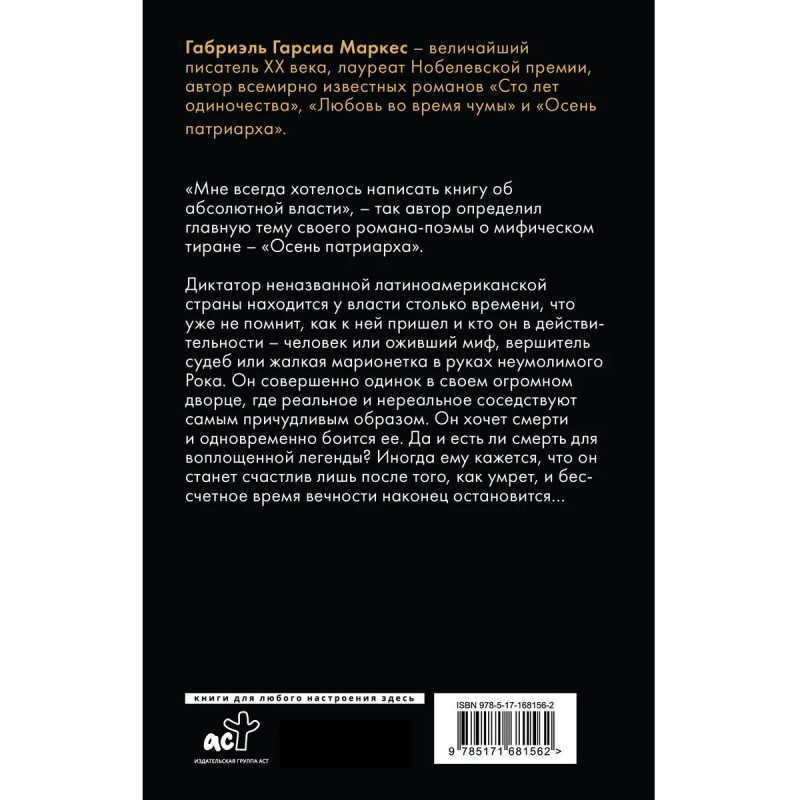 От автора всемирно известных романов Сто лет одиночества, Любовь во время чумы и Генерал в своем лабиринте. Книга об абсолютной власти, страхе ее потери и постепенном увядании всесильного диктатора. В переводе Дарьи Синицыной.