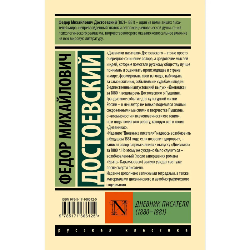 Дневник писателя это уникальное произведение, не имеющее аналогов ни в русской, ни в мировой литературе. Федор Михайлович Достоевский называл Дневник писателя энциклопедией общественной жизни в нем он публиковал статьи, заметки, обзоры, литературную критику, рецензии и фельетоны на общественные, политические и литературные события тех лет писал обо всем, что поразило и заинтересовало его. Все это превращало Дневники в средоточие мыслей и идей, которые помогали русскому обществу лучше помогать и оценивать происходящее в стране и мире, формировать свои взгляды, наблюдать за самой жизнью, событиями и судьбами людей. Одно из главных событий Дневников вошедшая в августовский номер за 1880 год речь Достоевского о Пушкине грандиозное событие для культурной жизни России, в которой автор поделился своими мыслями о всемирности и всечеловечности его гения. Данное издание также дополнено записными тетрадями, а также материалами дневникового и автобиографического содержания.