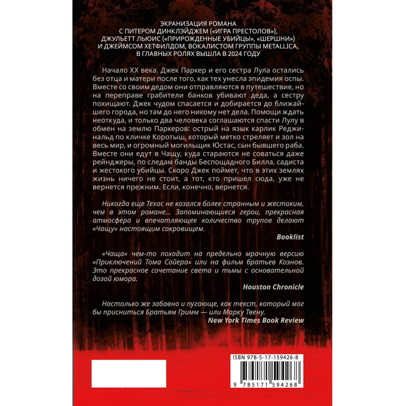 Джо Лансдейл больше всего известен как автор хоррора его заслуги перед жанром ужасов отмечены десятью премиями Брэма Стокера. Однако Лансдейл любит обращаться и к другим жанрам, например, к детективу, триллеру или, как в данном случае, вестерну. Чаща заслуженно считается одним из лучших романов Лансдейла. Это мрачный, жестокий, местами жестокий, атмосферный, увлекательный и динамичный вестерн с запоминающимися персонажами, завораживающей атмосферой и ироничными, в стиле Квентина Тарантино, диалогами. В сентябре 2024 года в международный прокат выходит экранизация романа главные роли в ней сыграли Питер Динклейдж (Игра престолов), Джульетт Льюис (Прирожденные убийцы) и лидер группы Metallica Джеймс Хэтфилд.