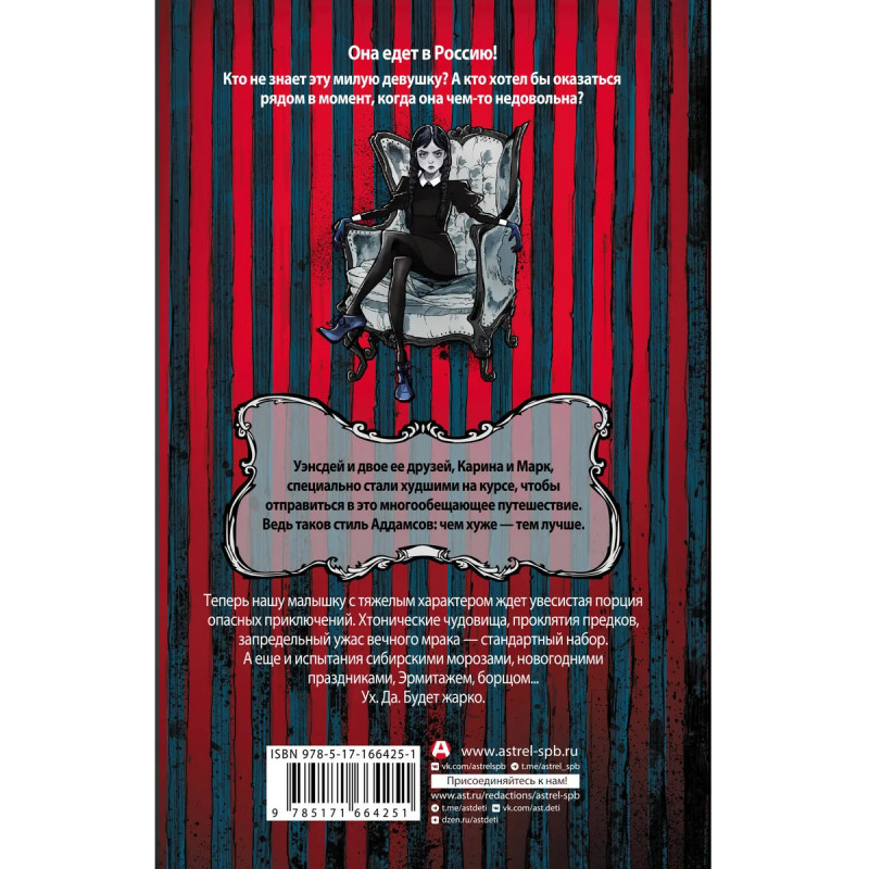 Уэнсдей Аддамс едет навстречу новым вызовам в Россию! Ну и кого тут пожалеть в первую очередь? Впрочем можно ли вообразить себе такую ситуацию, в которой действительно стоило бы побеспокоиться за Уэнсдей? Три новеллы разных авторов повествуют о приключениях Уэнсдей в заснеженной Сибири и мистическом Петербурге.
