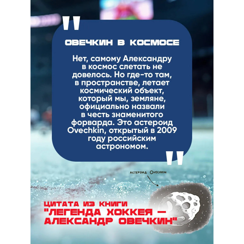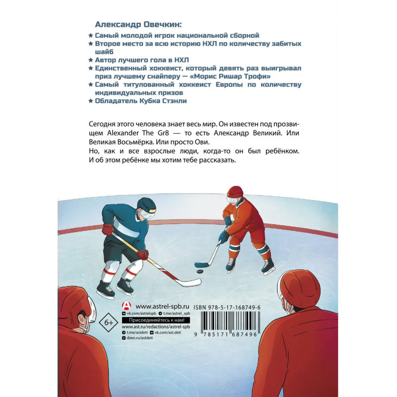 Александр Овечкин живая легенда и живой пример для подражания юным спортсменам. В этой книге биография и история достижений великого хоккеиста поданы в форме живых историй так, что ее будет интересно читать даже младшеклассникам. Дети узнают много нового не только о великом спортсмене, но и о хоккее и о развитии этого спорта в нашей стране.