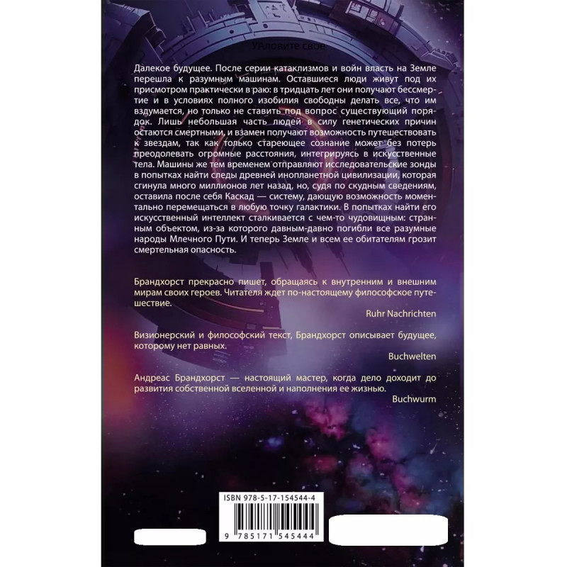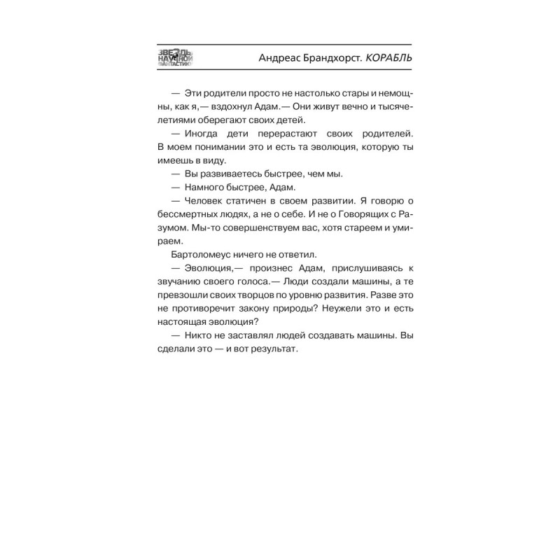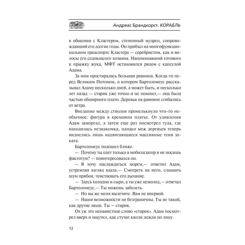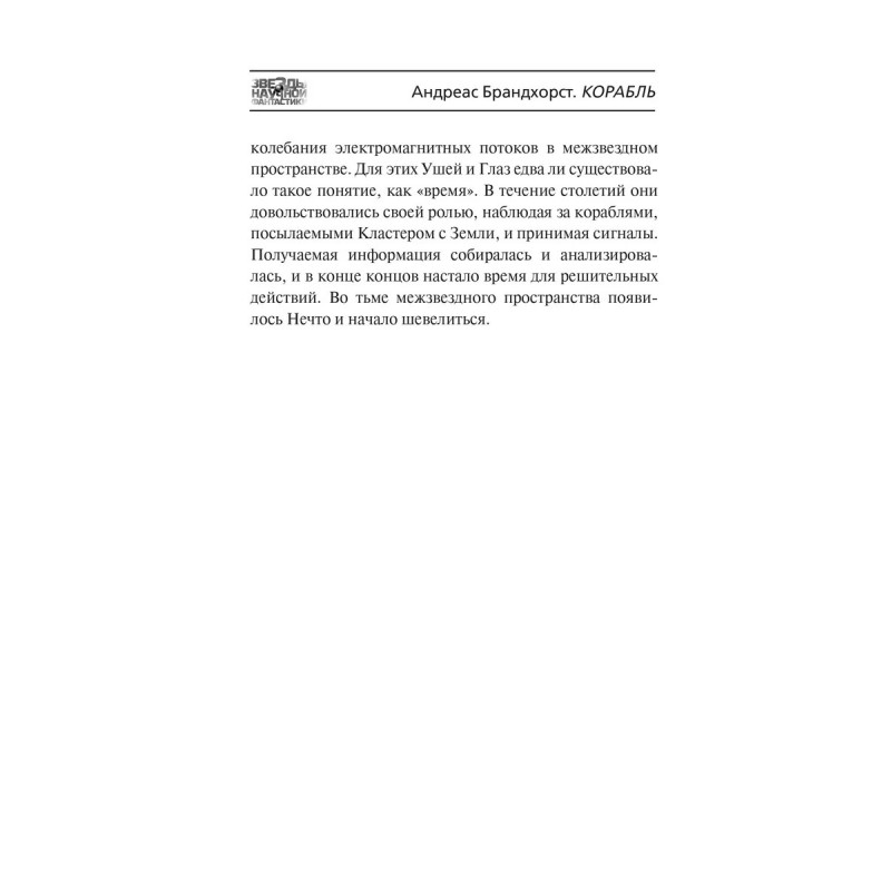 Корабль первая выходящая на русском языке книга Андреаса Бранхорста. Писатель, переводчик и редактор Андреас Брандхорст главный немецкий научный фантаст. На его счету свыше двух десятков романов, каждый из которых продается в Германии более чем стотысячными тиражами. Корабль один из самых известных романов Брандхорста и один из главных немецких фантастических романов последних лет. Книга завоевала Немецкую научно-фантастическую премию и премию Курда Лассивца. Корабль увлекательный одиночный роман об искусственном интеллекте, первом контакте и взаимодействии человека с машинным разумом.