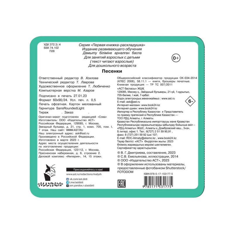 Весёлые стихи и яркие рисунки в книжке-раскладушке Песенки привлекут внимание ребёнка. Книга карманного формата, поэтому её удобно брать в дорогу. Страницы имеют безопасные закруглённые края. Плотный картон сохранит книгу на долгое время. Песенки древний жанр русского народного творчества. Короткие стихотворные напевы простыми словами объясняют ребёнку окружающий мир.