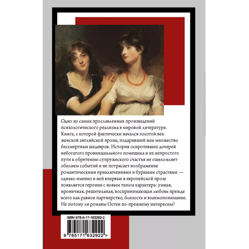 Одно из самых прославленных произведений психологического реализма в мировой литературе. Книга, с которой фактически начался золотой век женской английской прозы, подаривший нам множество бессмертных шедевров. История осиротевших дочерей небогатого провинциального помещика и их непростого пути к обретению супружеского счастья не ошеломляет обилием событий и не потрясает воображение романтическими приключениями и бурными страстями - однако именно в ней впервые в европейской прозе появляется героиня с новым типом характера: умная, ироничная, решительная, воспринимающая любовь прежде всего как равное партнерство, близость и взаимопонимание. Не потому ли романы Остен по-прежнему интересны?