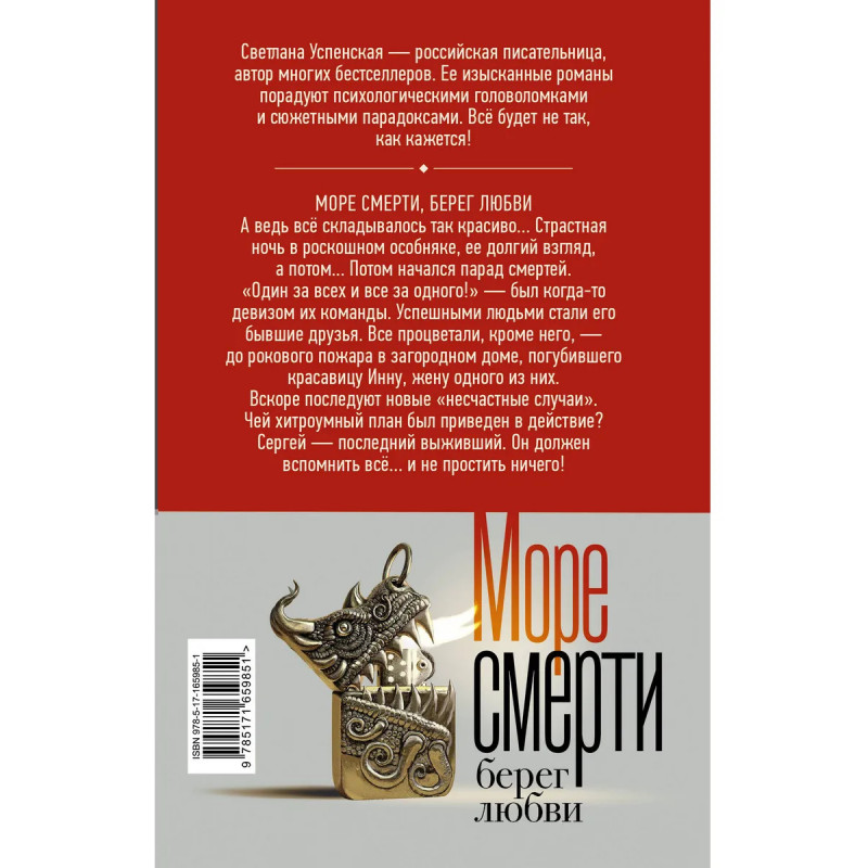 - Первый роман авторской серии детективов Криминальный дар. Детективы Светланы Успенской. - Долгожданное возвращение! Писательница, некогда соперничавшая с Александрой Марининой и Полиной Дашковой, взялась за перо после 10 лет молчания! - Книги Светланы Успенской не спутаешь ни с чем их отличают головоломные загадки, колкий юмор, потрясающая проницательность и парадоксальные сюжетные повороты. - Людская разобщенность, безответная любовь, зависть чужому счастью, скрытые фобии, тщательно охраняемые тайны прошлого все это в криминальных драмах писательницы.