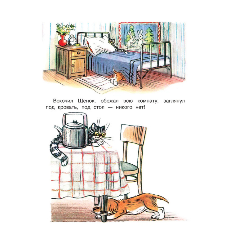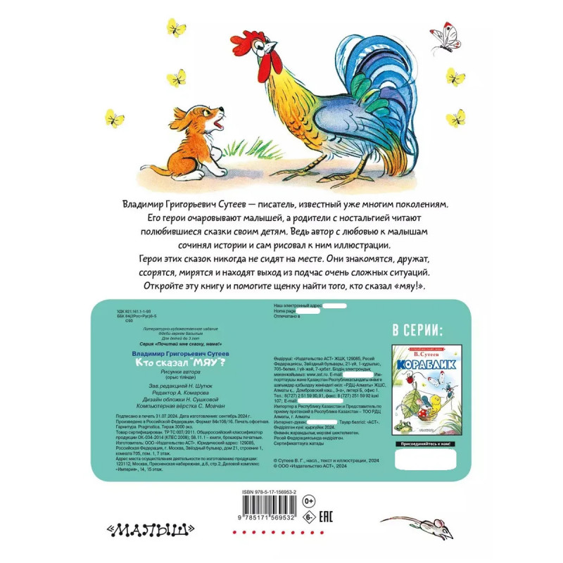Владимир Григорьевич Сутеев писатель, известный уже многим поколениям. Его герои очаровывают малышей, а родители с ностальгией читают полюбившиеся сказки своим детям. Ведь автор с любовью к малышам сочинял истории и сам рисовал к ним иллюстрации. Герои этих сказок никогда не сидят на месте. Они знакомятся, дружат, ссорятся, мирятся и находят выход из подчас очень сложных ситуаций. Откройте эту книгу и помогите щенку найти того, кто сказал "мяу!".