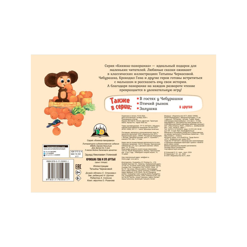 Серия "Книжка-панорамка" идеальный подарок для маленьких читателей! Любимые сказки оживают в классических иллюстрациях Татьяны Черкасовой. Чебурашка, Крокодил Гена и другие герои готовы встретиться с малышом и рассказать ему свои истории. А благодаря панорамке на каждом развороте чтение превращается в увлекательную игру!