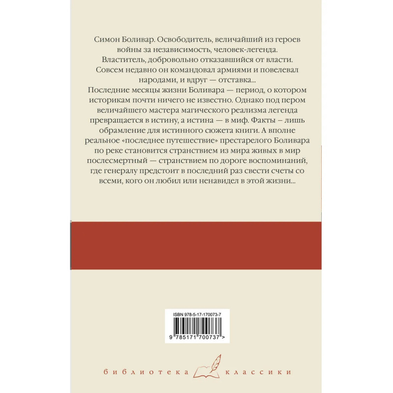 Лауреат Нобелевской премии по литературе, автор бестселлеров Сто лет одиночества и Любовь во время чумы Габриэль Гарсиа Маркес несколько лет хотел написать книгу, действие которой разворачивалось бы в окрестностях реки Магдалена местности, в которой прошло детство писателя. Однажды он прочел Последнее путешествие незаконченную рукопись своего друга, писателя Альваро Мутиса, посвященную последним месяцам жизни Симона Боливара, проведенным Великим Освободителем как раз возле реки Магдалена. Поскольку Мутис не собирался заканчивать рукопись, Маркес попросил у него разрешения позаимствовать идею книги. Приступив к работе над романом, Маркес два года потратил на сбор материала и изучение исторических документов, в том числе писем Боливара, газетных вырезок того времени и семнадцати томов мемуаров Даниэля Флоренсио ОЛири адъютанта Великого Освободителя.