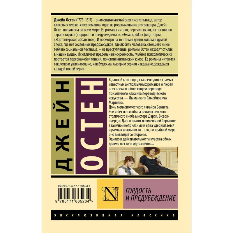 Гордость и предубеждение один из самых известных романов о любви. Его создательница Джейн Остен одна из самых выдающихся английских писательниц первой половины XIX века, автор таких произведений как Разум и чувства, Эмма и Доводы рассудка. К сожалению, настоящая слава пришла к писательнице уже после ее смерти. Роман Гордость и предубеждение неоднократно адаптировался для театральной сцены, кино и телевидения. В данном издании роман Гордость и предубеждение приведен в классическом переводе Иммануэля Самойловича Маршака. Издание в знаменитой серии Эксклюзивная классика.