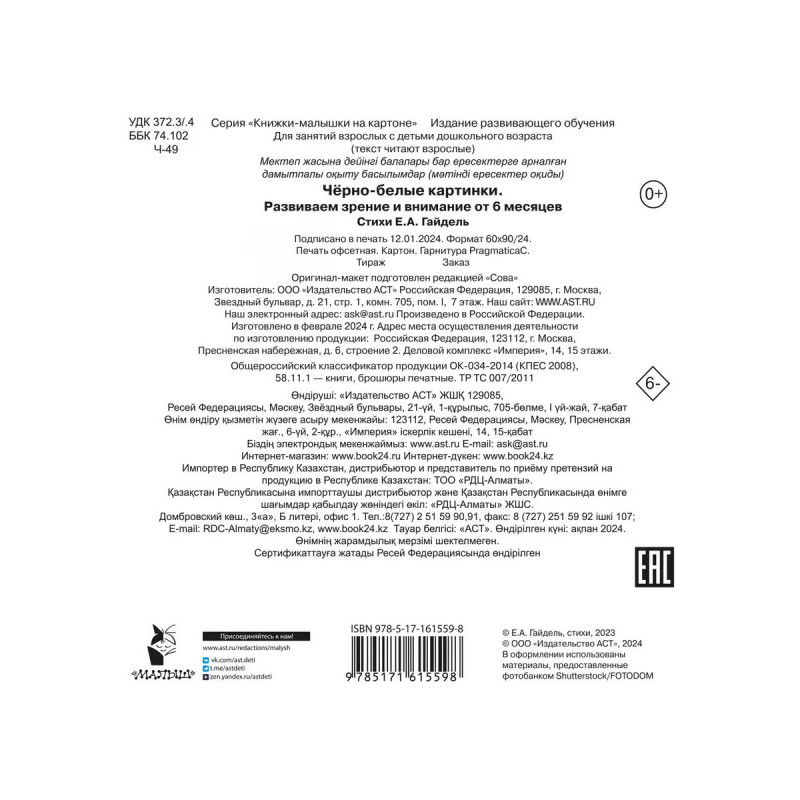 Характеристики Чёрно-белые картинки. Развиваем зрение и внимание с 6 месяце