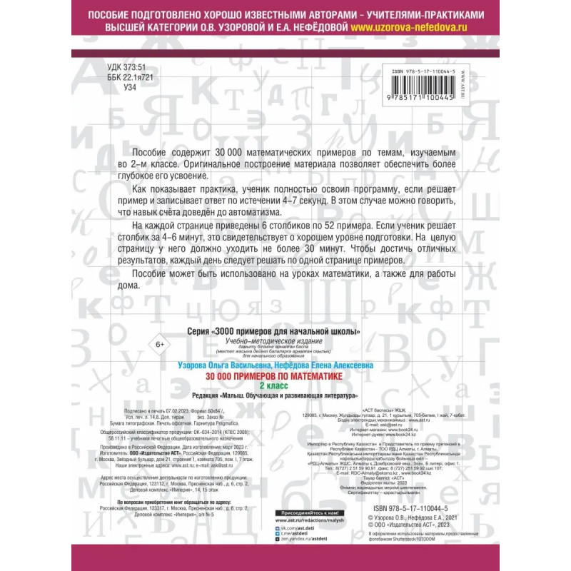 Пособие подготовлено хорошо известными авторами - учителями-практиками высшей категории О.В. Узоровой и Е.А. Нефёдовой. Все пособия этих авторов пользуются неизменной популярностью и помогают детям хорошо понять и прочно усвоить все темы школьной программы.Пособие содержит математические примеры по темам, изучаемым во 2 классе.