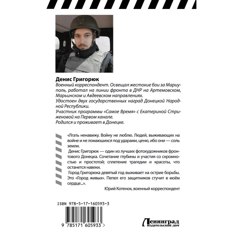 Город живых. Промежуток между двумя горячими фазами Донбасского конфликта. Временное затишье. Воздух наэлектризован. Ощущается грядущая бойня. Все это понимают, но продолжают жить, стараясь не замечать этого. Простой студент решает, что нельзя оставаться в стороне. Но он не берёт в руки оружие. Его автоматом становится фотоаппарат. Постепенно он осознаёт, что в современных войнах информация играет большую роль. Вместе с этим осознанием приходит и ощущение трансформации сознания. Изменение отношения к миру, войне, людям и себе. Из этой книги вы узнаете, что происходит с сознанием рядового жителя горячей точки, а также что иногда делает посттравматический синдром в условиях гражданской войны, где люди, говорящие на одном языке, уничтожают друг друга, а в это время мирная жизнь продолжается параллельно с адом, творящимся совсем рядом.