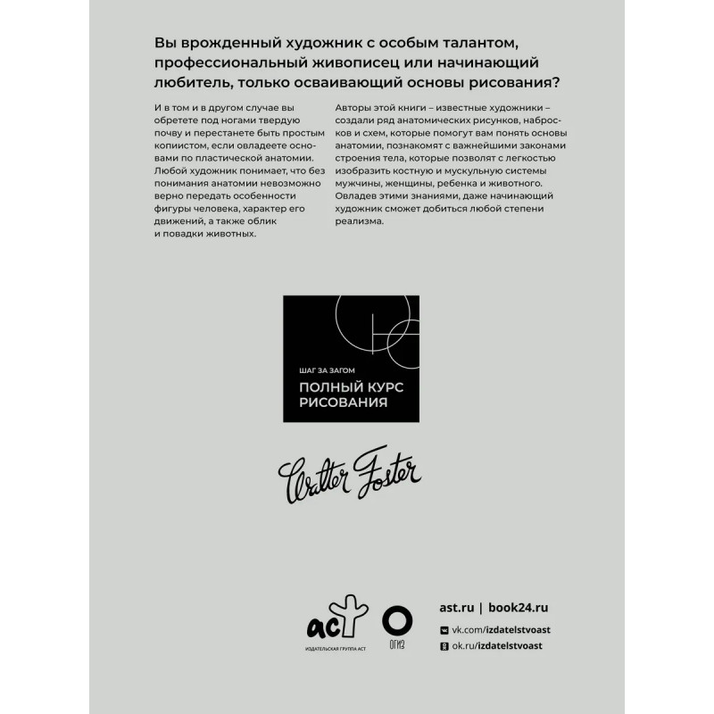 Врожденный ли вы художник с особым талантом, профессиональный живописец или начинающий любитель, только осваивающий основы рисования? И в том и в другом случае вы обретете под ногами твердую почву и перестанете быть простым копиистом, если овладеете знаниями по пластической анатомии. Любой художник знает, что без знания анатомии невозможно верно передать особенности фигуры человека, характер его движений, а также облик и повадки животных. Авторы этой книги известные художники создали ряд анатомических рисунков, набросков и схем, которые помогут вам понять основы анатомии, познакомят с важнейшими законами строения тела, которые позволят с легкостью изобразить костную и мускульные системы мужчины, женщины, ребенка и животного. Овладев этими знаниями даже начинающий художник сможет добиться любой степени реализма.