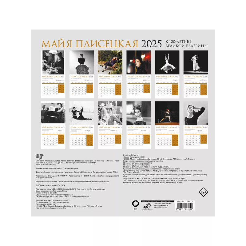 Календарь подготовлен к 100-летию великой балерины Майи Михайловны Плисецкой.