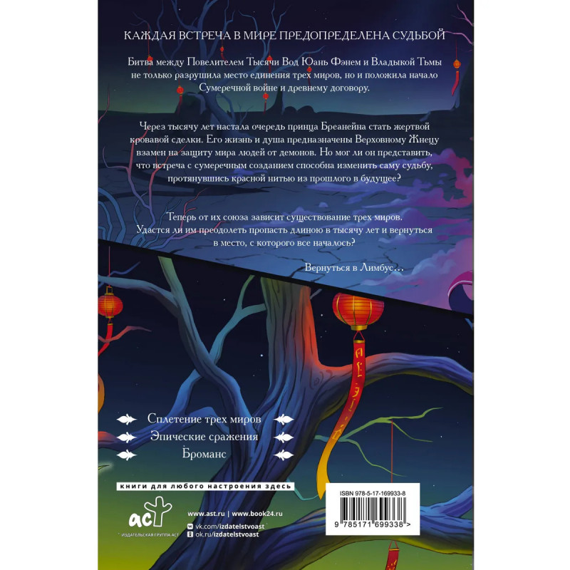 Первая часть фэнтези с азиатской атмосферой, китайскими легендами и судьбоносными встречами. Яркий броманс, полный душевных метаний и стекла. История о войне миров людей и небожителей с миром хитрых демонов; о самоотверженном юноше, который должен стать жертвой Верховному Жнецу ради спасения человечества. Над иллюстрациями и элементами верстки работал художник Stasyan Ostrov. Издание с цветными иллюстрациями и форзацами. Страницы оформлены атмосферными черно-белыми иллюстрациями. Красочная суперобложка, стильная минималистичная обложка. Бонус первого тиража одна из пяти коллекционных карточек с персонажами книги! Понравится поклонникам азиатского фэнтези и новелл Благословение небожителей, Магистр дьявольского культа, Злодейский путь и Топить в огне бушующем печали.