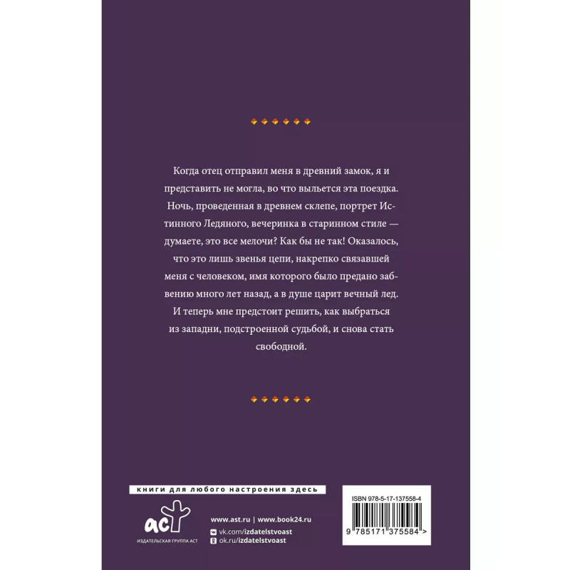 Лед твоих объятий. Когда отец отправил меня в древний замок, я и представить не могла, во что выльется эта поездка. Ночь, проведенная в древнем склепе, портрет Истинного Ледяного, вечеринка в старинном стиле - думаете, это все мелочи? Как бы не так! Оказалось, что это лишь звенья цепи, накрепко связавшей меня с человеком, имя которого было предано забвению много лет назад, а в душе царит вечный лед. И теперь мне предстоит решить, как выбраться из западни, подстроенной судьбой, и снова стать свободной.