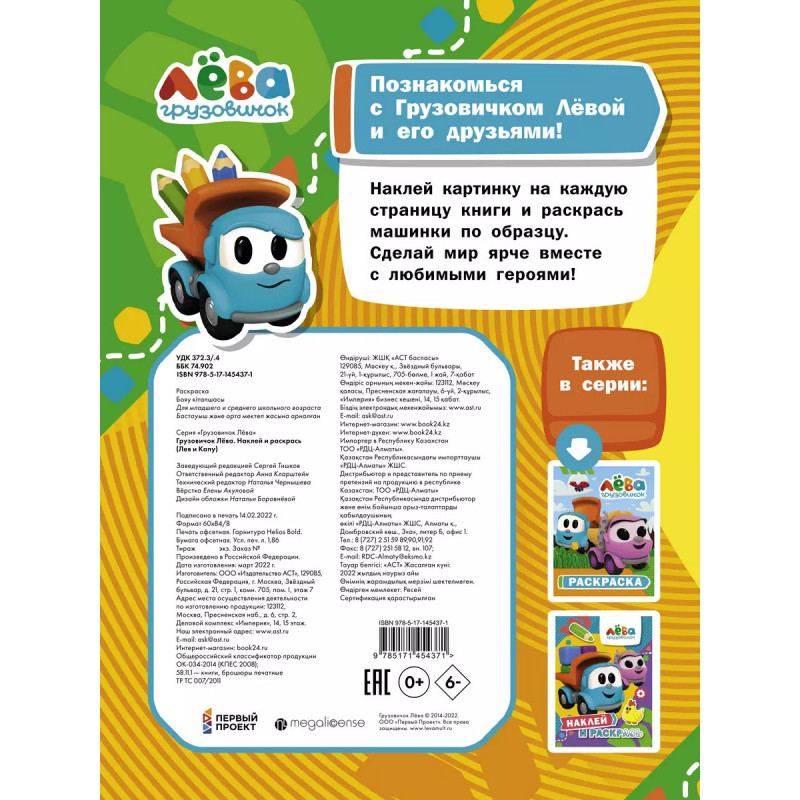 Характеристики Грузовичок Лёва. Наклей и раскрась (Лея и Капу).