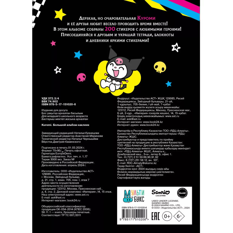 Дерзкая, но очаровательная Куроми и ее друзья любят весело проводить время вместе! В этом альбоме собраны 200 стикеров с любимыми героями! Присоединяйся к друзьям и украшай тетради, блокноты и дневники яркими стикерами!