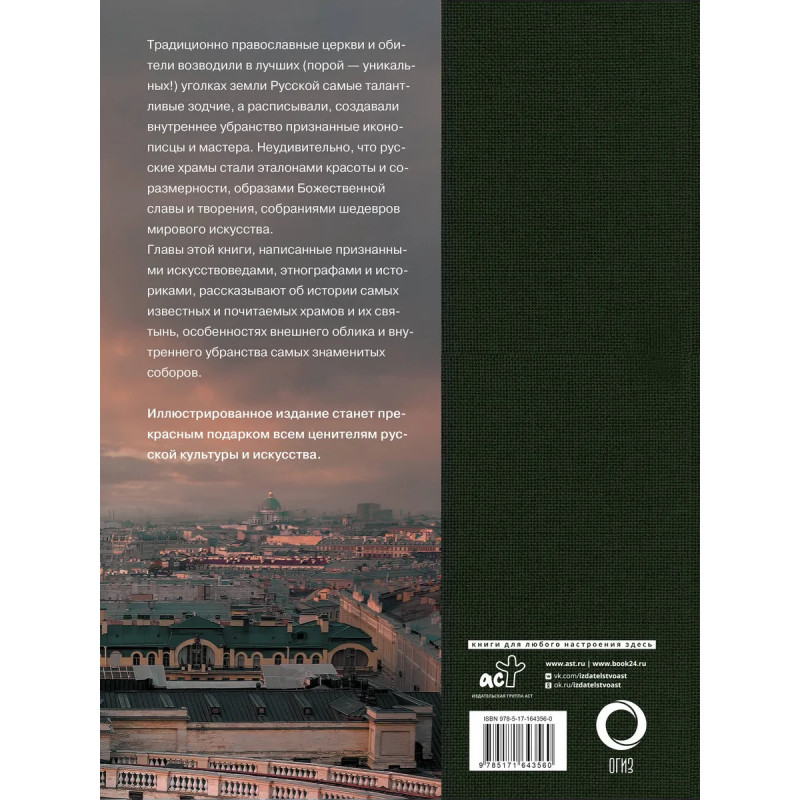 Традиционно православные церкви и обители возводили в лучших (порой уникальных!) уголках земли Русской самые талантливые зодчие, а расписывали, создавали внутреннее убранство признанные иконописцы и мастера. Неудивительно, что русские храмы стали эталонами красоты и соразмерности, образами Божественной славы и творения, собраниями шедевров мирового искусства. Главы этой книги, написанные признанными искусствоведами, этнографами и историками, рассказывают об истории самых известных и почитаемых храмов и их святынь, особенностях внешнего облика и внутреннего убранства самых знаменитых соборов. Иллюстрированное подарочное издание станет прекрасным подарком всем ценителям русской культуры и искусства.