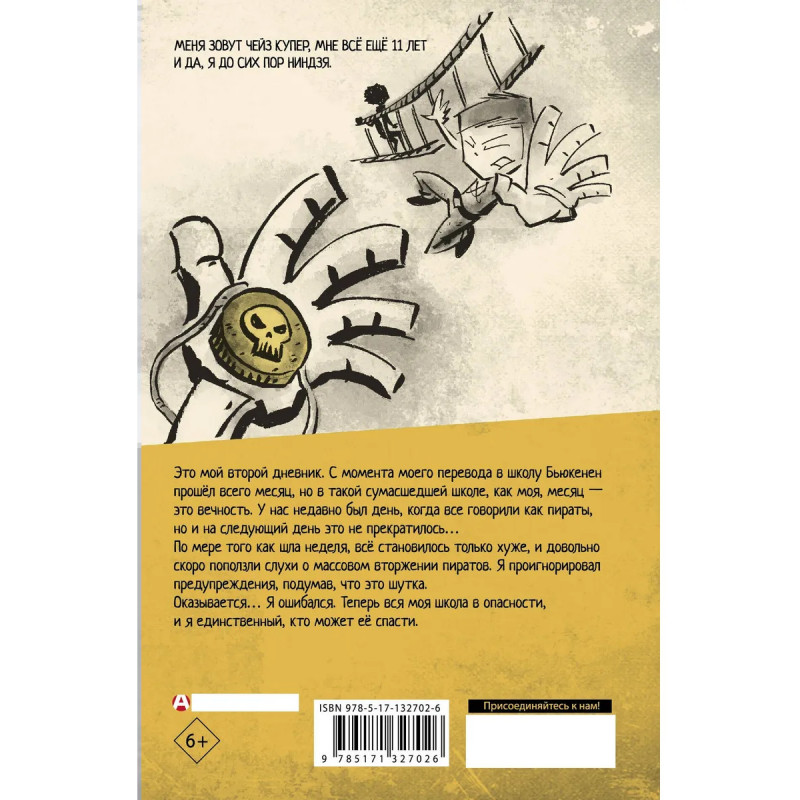 Меня зовут Чейз Купер, мне всё ещё 11 лет, и да, я до сих пор ниндзя. Это мой второй дневник. С момента моего перевода в школу Бьюкенен прошёл всего месяц, но в такой сумасшедшей школе, как моя, месяц – это вечность. У нас недавно был день, когда все говорили как пираты, но и на следующий день это не прекратилось… По мере того как шла неделя, всё становилось только хуже, и довольно скоро поползли слухи о массовом вторжении пиратов. Я проигнорировал предупреждения, подумав, что это шутка. Оказывается... Я ошибался. Теперь вся моя школа в опасности, и я единственный, кто может её спасти.